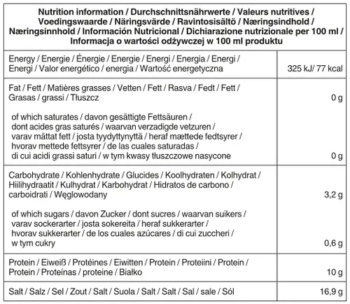 Naše přírodně fermentovaná sójová omáčka má následující výživové hodnoty na 100 ml: