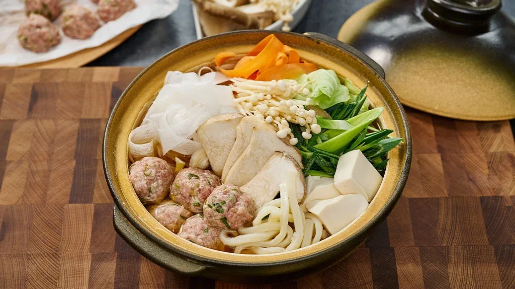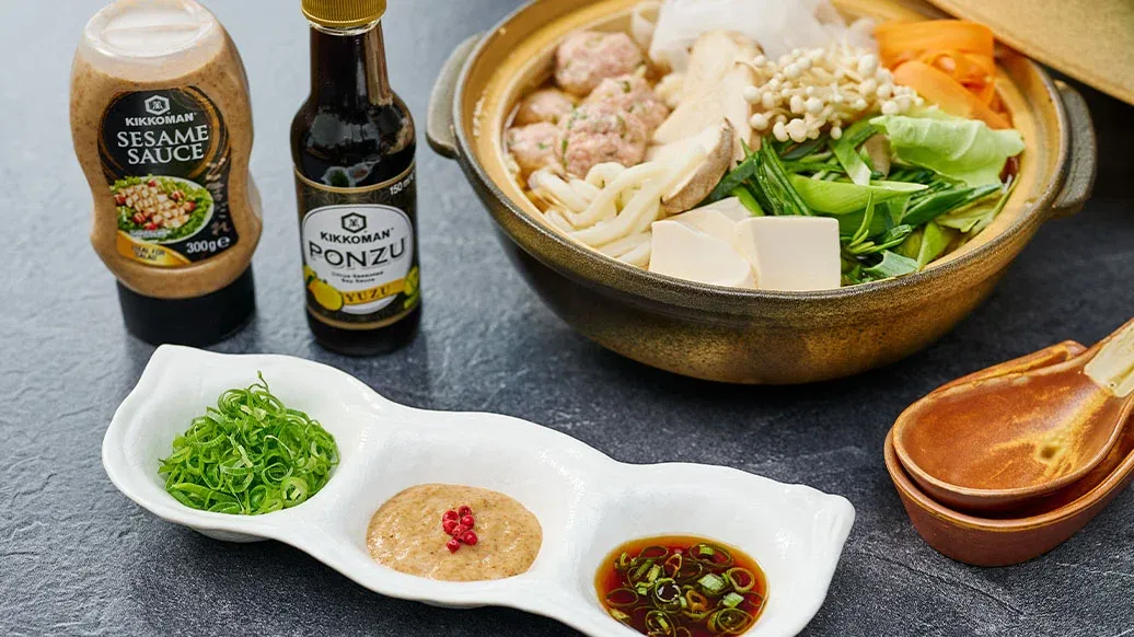 Tento vydatný vývar, kdysi podávaný v sumo stájích, aby dodal sílu a vytrvalost zápasníkům, je plný tofu kuliček, čerstvé zeleniny a nudlí. Je dochucený Kikkoman Základem na ramen a Kikkoman Sezamovým olejem, a servíruje se s chutnými dipy.