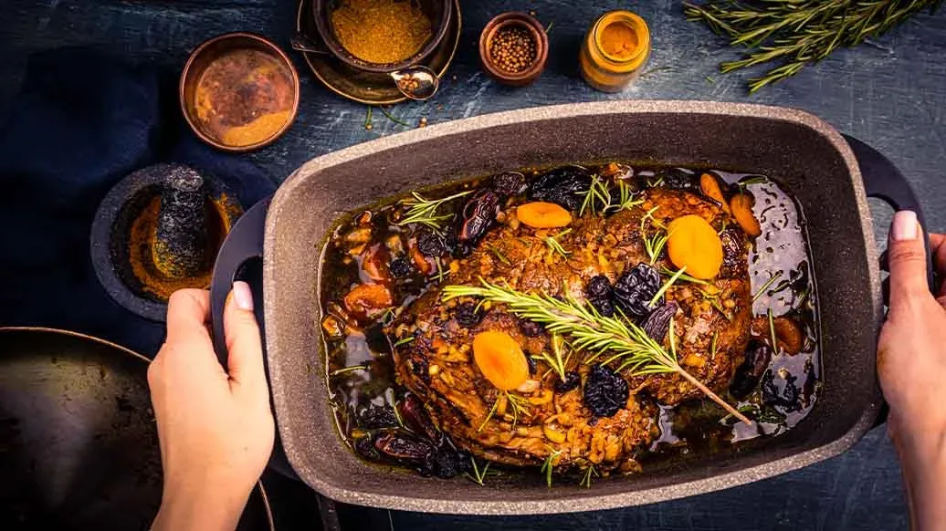 Pokrm inspirovaný Blízkým východem spojuje sladké a slané chutě: dušené jehněčí marinované v Sójové omáčce Kikkoman, zázvoru a kurkumě, poté pomalu vařené se sušenými švestkami, datlemi a meruňkami. Dokonalý vrchol sváteční večeře.