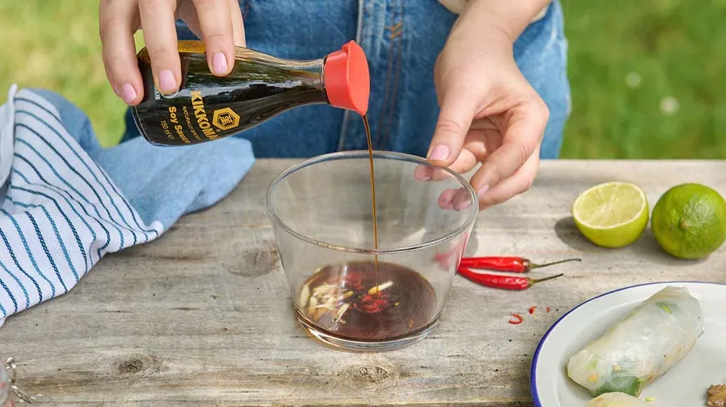 V malé misce vyšlehejte Kikkoman Sójovou omáčku, limetkovou šťávu, cukr, nasekaný česnek a najemno nakrájené chilli, dokud se cukr nerozpustí. Podávejte s jarními závitky.