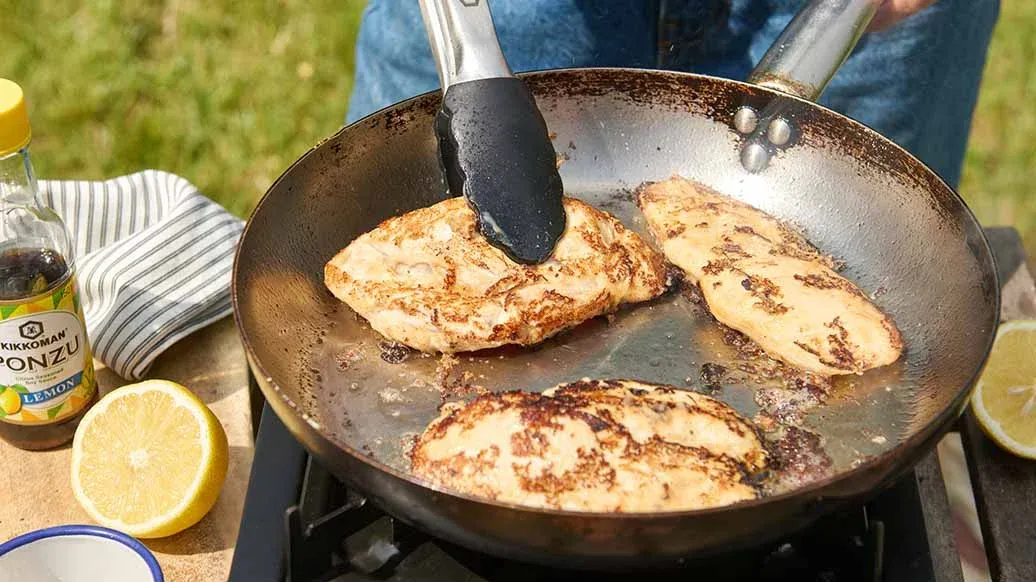 300 g kuřecích filet – 1 špetka čerstvě mletého pepře – 1 polévková lžíce arašídového másla – 90 ml Kikkoman Citrónová ponzu omáčka