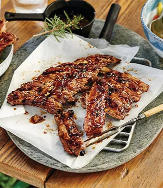 Tato šťavnatá BBQ žebírka jsou marinovaná v Kikkoman Sójové omáčce, zázvoru, citronu, sezamovém oleji, medu a sezamových semínkách. Lepkavá glazura je neodolatelná – připravte si ubrousky!
