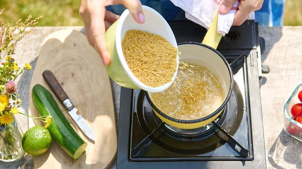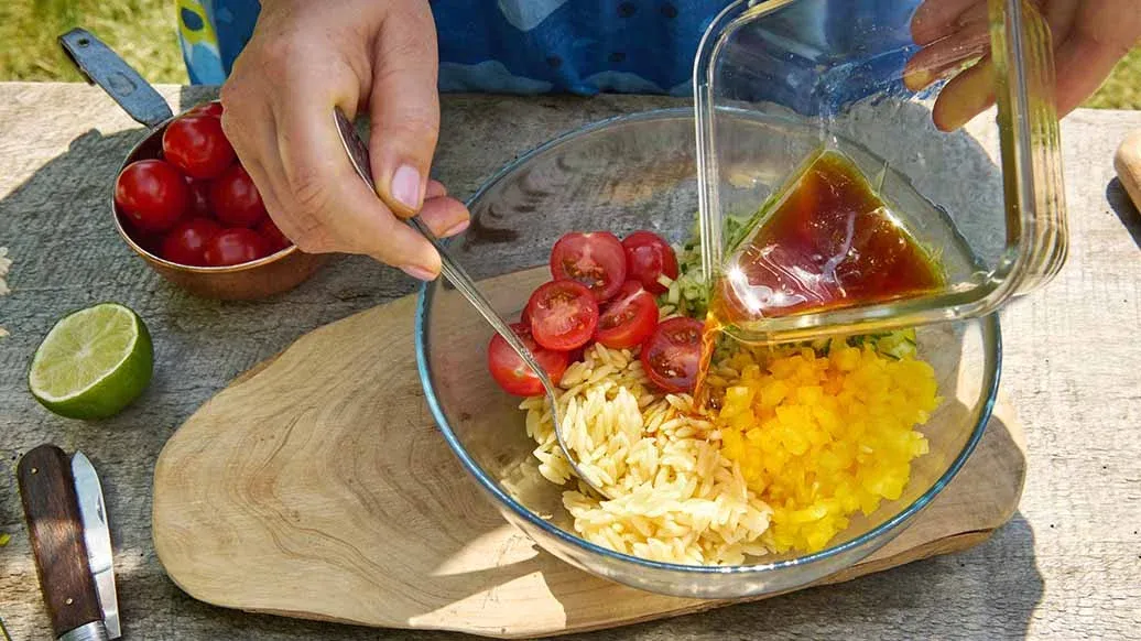 Vychladlé orzo těstoviny smíchejte ve velké míse s nakrájenou letní zeleninou. Salát přelijte limetkovým dresinkem a jemně promíchejte, aby se všechny ingredience rovnoměrně obalily. Ozdobte čerstvými bylinkami, strouhaným pecorino romano a Kikkoman Poke omáčkou.