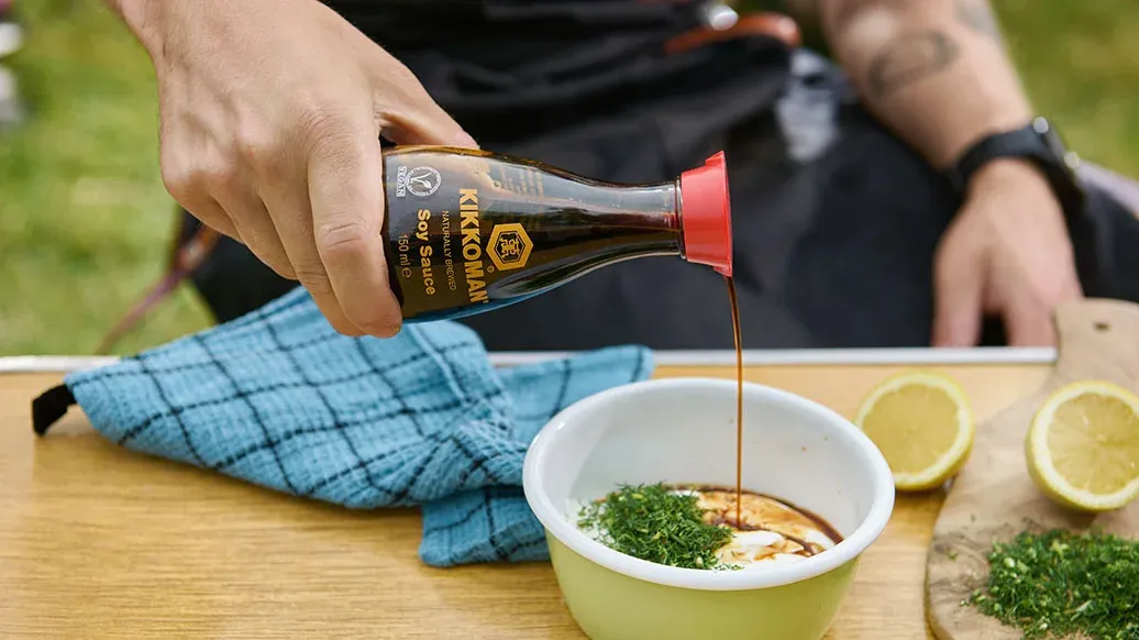 Smíchejte řecký jogurt, nasekaný kopr, citrónovou šťávu a Kikkoman Sójovou omáčku v malé misce. Dobře promíchejte a dochuťte.