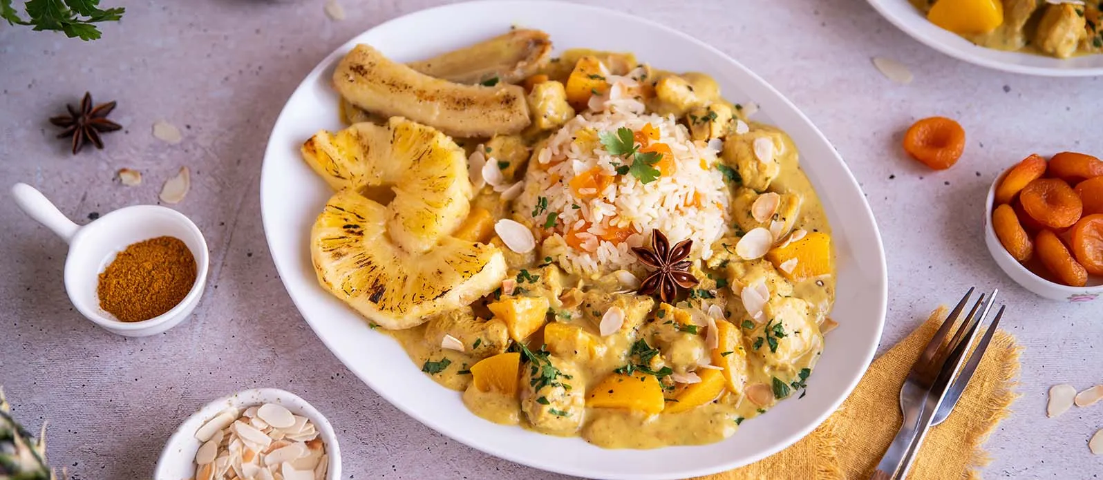 Riz Casimir spojuje křehké kuřecí maso, jemné kari koření a sladké ovoce. Kapka Sójové omáčky Kikkoman dodává hloubku a lahodnou slanou chuť. Podávaný teplý je to uklidňující a chuťově vyvážený pokrm.