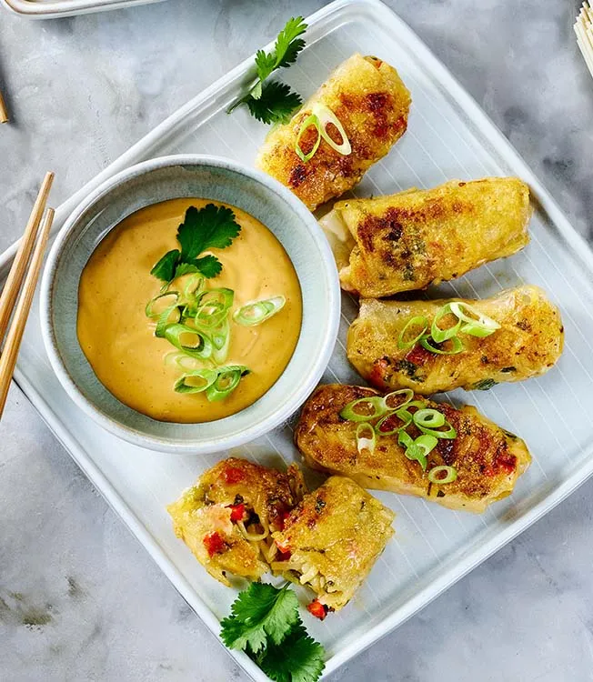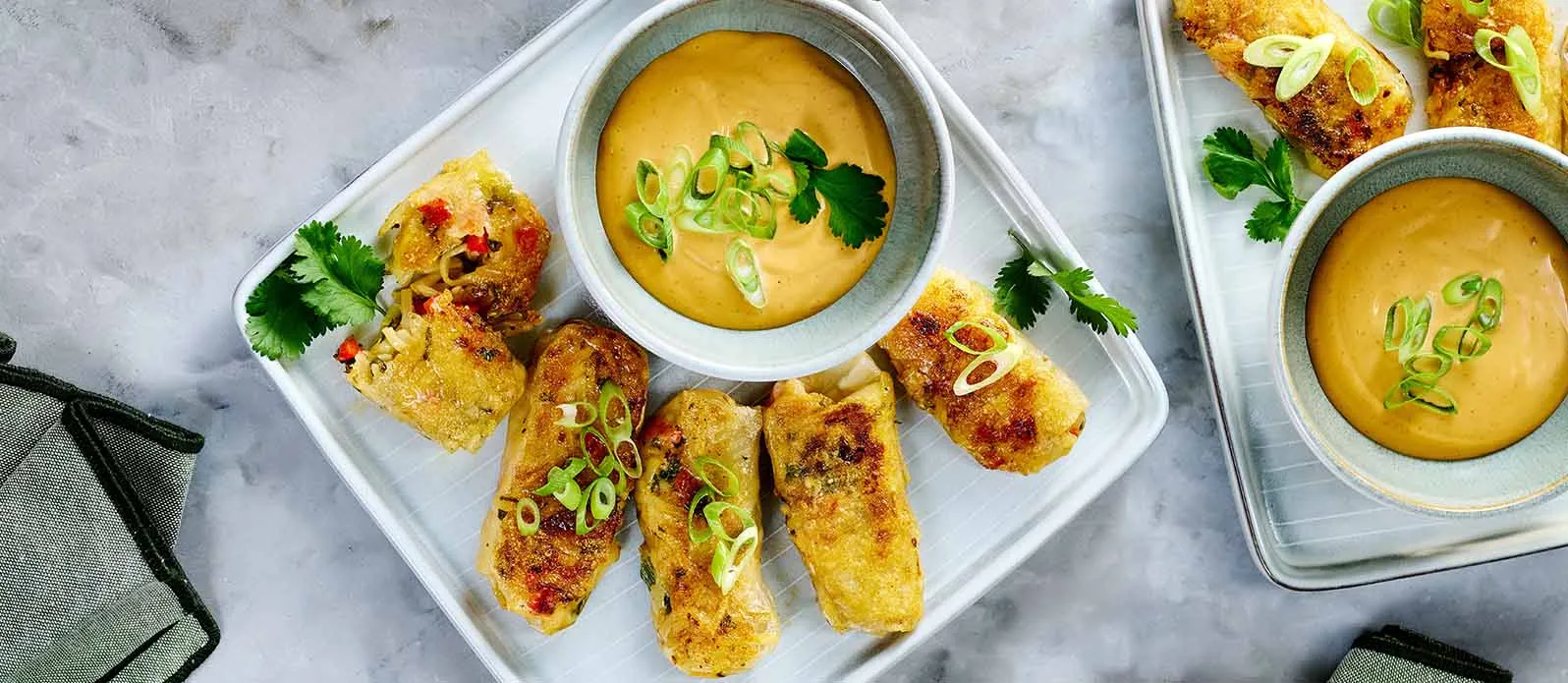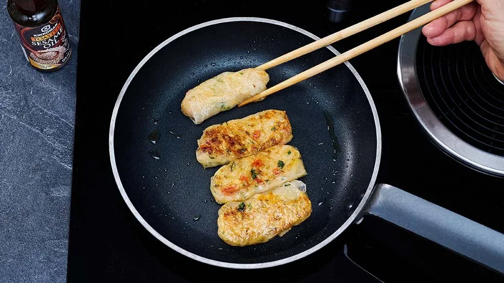 Rychlé, křupavé rýžové taštičky plněné ramenem, zeleninou a sýrem, dochucené omáčkami Kikkoman Kimchi Chili a Kikkoman Sójovou omáčkou. Přidejte krémový dip a máte ideální svačinku nebo lehké hlavní jídlo.