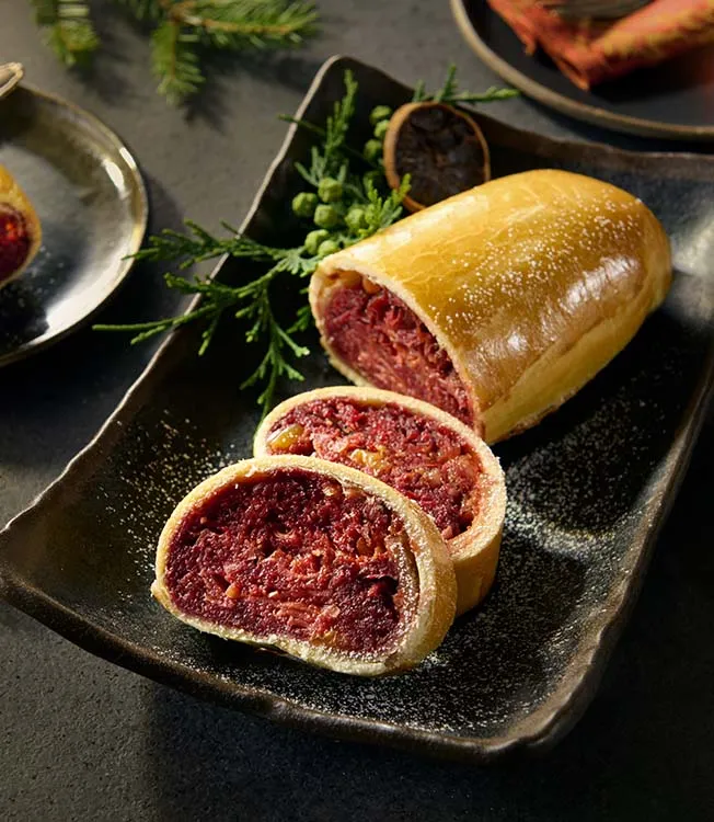 Zažeňte zimní palčivost tímto teplým řepným závinem s jablky, přelitým jemnou omáčkou s esencí Japonska. Dokonalá rovnováha zemitých a sladkých tónů dokonale uspokojí všechny vaše smysly.
